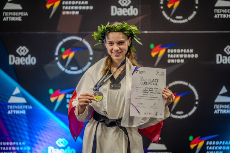 Z radością informujemy, że Lena Mielcarek, uczennica Zespołu Szkół w Kleszczewie, zdobyła srebrny medal na Mistrzostwach Europy Kadetów w Taekwondo Olimpijskim, które odbyły się 7