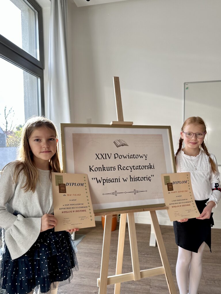 5 listopada 2025 r. Marta Konieczka i Maja Talaga – uczennice klasy 4b – wzięły udział w XXIV Powiatowym Konkursie Recytatorskim Wpisani