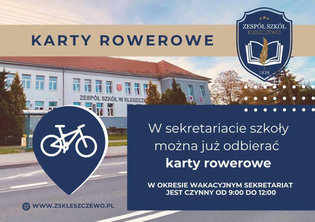 Drodzy Uczniowie! Informujemy, że Ci z Was, którzy pomyślnie zdali egzamin na kartę rowerową i których arkusze zaliczeń nie zawierały błędów formalnych lub braków, mogą odebrać swoje karty rowerowe w sekretariacie. Sekretariat jest czynny