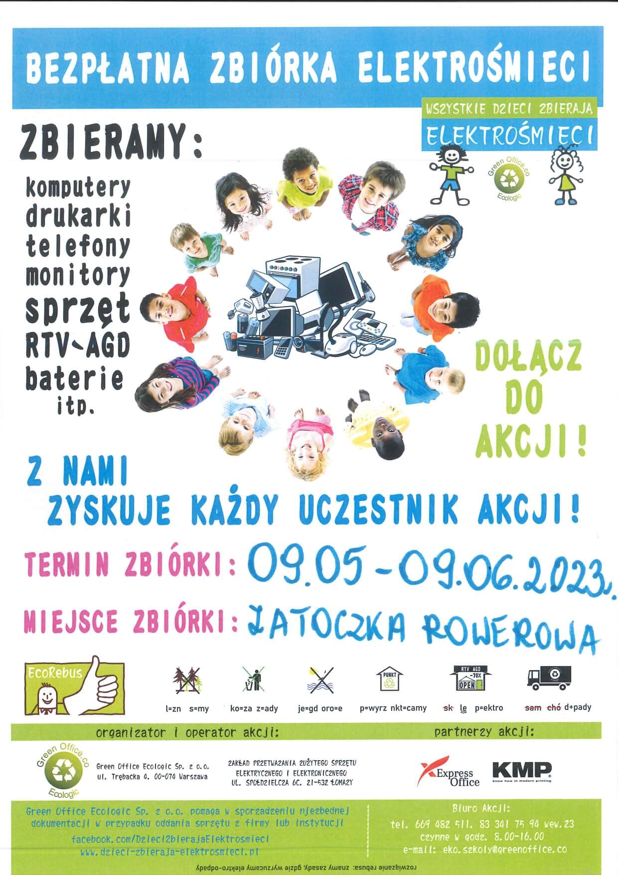 Po raz kolejny nasza szkoła przystąpiła do akcji “Wszystkie dzieci zbierają elektrośmieci. Celem akcji jest podniesienie świadomości ekologicznej wśród dzieci i młodzieży, oraz zwrócenie uwagi na prawidłowe zagospodarowanie odpadami. W zamian za przyniesiony