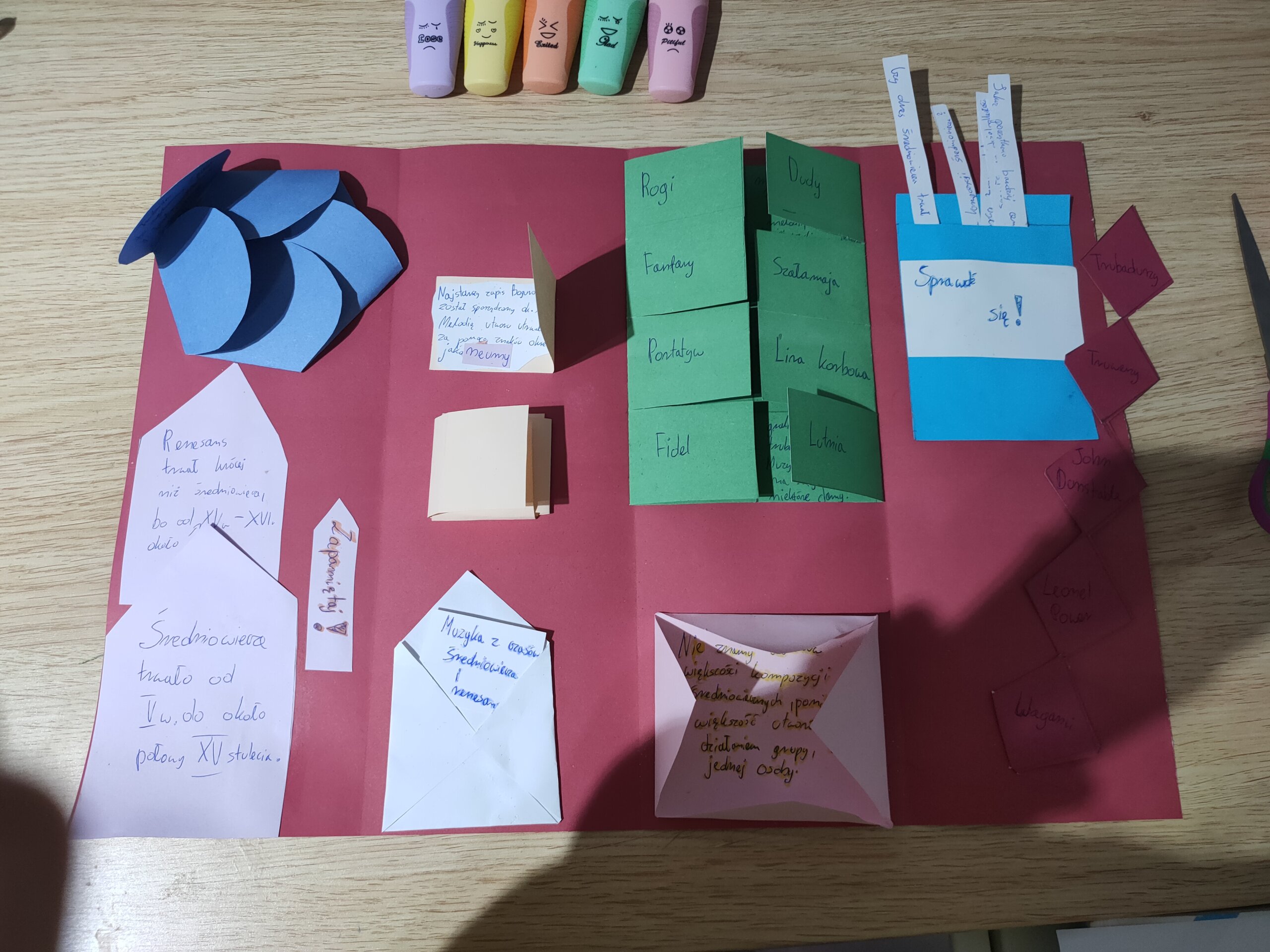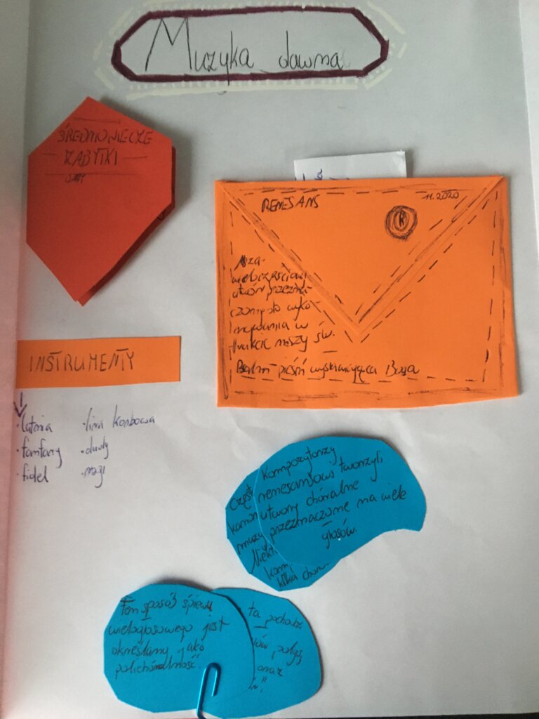 Muzyka to nie tylko śpiew! Udowodnili to uczniowie klas 6. W minionych tygodniach poszerzali swoją wiedzę na temat muzyki dawnej. Jako pomysł na pracę postanowiliśmy wypróbować metodę tworzenia lapbooków. Uczniowie wykazali się dużą kreatywnością, pracowitością i sporym talentem plastycznym. A oto efekty: