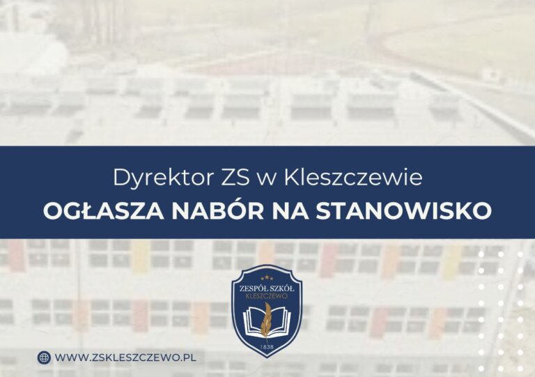 DYREKTOR ZESPOŁU SZKÓŁ W KLESZCZEWIE OGŁASZA NABÓR NA – NAUCZYCIELA JĘZYKA ANGIELSKIEGO DO PRZEDSZKOLA – 5/25 – NAUCZYCIELA RYTMIKI DO PRZEDSZKOLA – 5,5/25